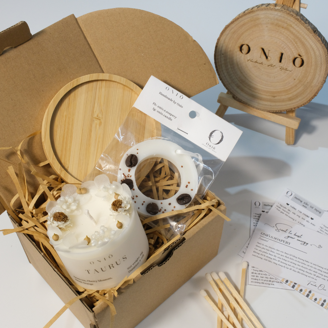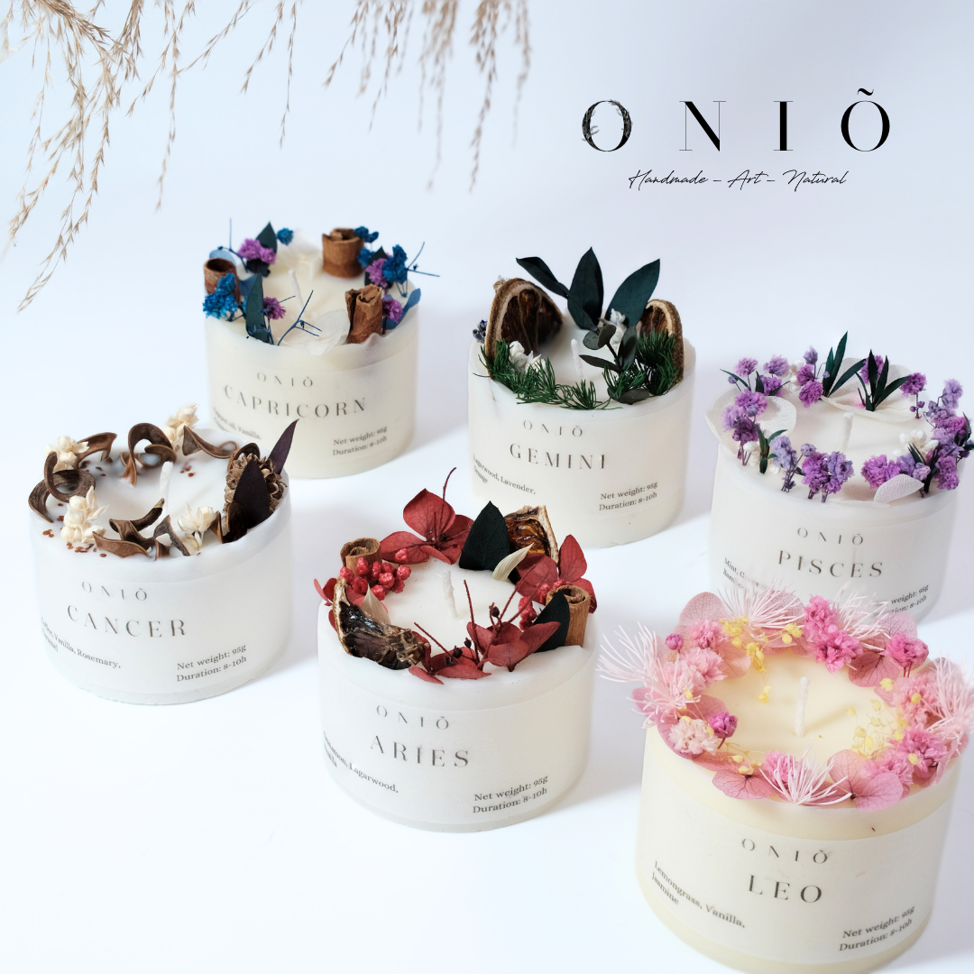 - Set hộp gồm 1 cây nến trụ thấp chủ đề ZODIAC - 95g, 1 sáp vòng treo, 1 đế gỗ để nến. (MÙI HƯƠNG CỤ THỂ CỦA NẾN VÀ SÁP ĐƯỢC MÔ TẢ Ở ẢNH PHÂN LOẠI TỪNG SET)